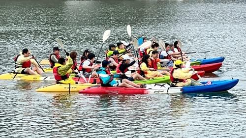 餐後全員轉往划舟場地,於 14:30 開始進行水上體驗。隊員們換上合適裝備,在 14:30–16:30 間享受划舟的樂趣,於水波間恣意遊弋,暢快又刺激,為本次活動掀起另一波高潮。活動期間,大家彼此照應,水上安全實施確實,過程順利圓滿。