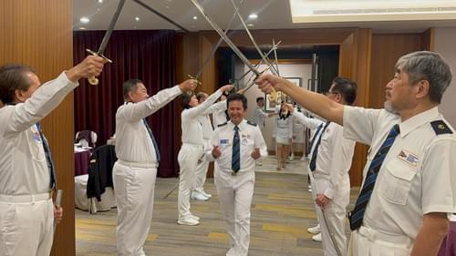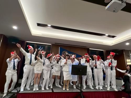2025年12月10日,近百位來自各地的扶輪與IYFR夥伴齊聚五星級淡水福容大飯店,參與「台灣光耀艇隊會員大會暨新艇員授證典禮與聖誕趴」,活動兼具海上航行特色、組織運作的正式感與年終相聚的溫馨歡樂,展現光耀艇隊高度凝聚力。現場可見IYFR國際大使PRIP Gary賢伉儷、台灣區司令RC Tresor、創隊司令CFC Healthy、副司令FVC David 2、預備司令FRC Health,以及來自各社的重要貴賓齊聚一堂,新舊艇員互動熱絡。會員大會順利完成選務(2027-28 FC與26-27執行委員選舉)與會務報告,選務與行政由FVC統籌,IPP PC負責選票印製與投票箱,PC與Luke進行統計,Cindy與MacGyver唱票,Auto與Grace監票,流程嚴謹有序。二十餘位新艇員授證典禮在劍門儀式中隆重展開,舉劍門由Health、Auto、MacGyver、Rick、Al、Grace、Wilson、Johnson、Tony、Luke、Jason、Poster等人擔任,司儀由光耀社PP Tiff與想像社IPPCindy接力主持,糾察與引導由想像社J.P協調控場,FS Rick製作新艇員簡報,Janet遞送證書、PRIP Gary親自頒發,ChuChu協助誓詞與回收,整體分工細膩流暢。晚宴中,舞蹈老師Sabrina帶動健康操,金龍社PP Jim帶來國樂演出,大晶華社CP Rick與一甲社PP Grace獻唱,並有趣味問答與耶誕抽抽樂炒熱氣氛,Mike、PP Tiff與J.P等工作人員穿梭其間,讓活動圓滿進行。整場活動在淡水河日夜景映襯下,既隆重又歡樂,充分體現台灣光耀艇隊的活力、紀律與兄弟情誼。