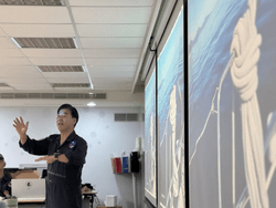 本次講授主題「海上誰要讓誰?1972年IMO 聯合國海事組織國際海上避碰規則」,内容包含「國際避碰法規(COLREGs)的專業教學,旨在向未來的船長與助教傳授海上導航規則。講師透過邏輯化與口訣化的方式,深入淺出地解析了正常瞭望、安全速度以及如何判斷碰撞危機等核心觀念。內容詳細說明了權利船與避讓船之間的等級區分,並針對「對向」、「追越」與「交叉相遇」三種動態態勢,規定了明確的避讓動作與聲號。此外,課程還結合海洋生態保護與能源轉型議題,強調在航行的同時必須重視珊瑚礁保育。